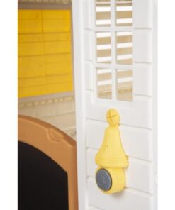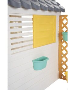 Het speelhuisje lijkt net op een écht huis en heeft ook verschillende accessoires zoals een brievenbus en deurbel. Daarnaast heeft hij een schutting met leuke plantenbakjes en ramen met luiken. Ook heeft het huis natuurlijk een deur, waar tevens op getekend kan worden met krijt. Het is maar een half deurtje, zodat jij als ouder altijd een oogje in het zeil kunt houden.