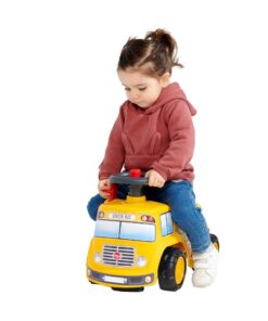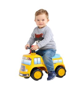 Op weg naar school gaan was nog nooit zo leuk met deze schoolbus, ontworpen voor kleine schoolkinderen vanaf 12 maanden. Met zijn schattige, ronde gezicht en felle kleuren wordt dit de favoriete manier van bewegen voor baby’s. Supergemakkelijk te hanteren dankzij het directionele stuur met claxon, en met uitstekende stabiliteit kan uw kind zijn globale motoriek in alle veiligheid en stijl ontwikkelen! Onder de zitting zit een klein opbergdoosje verborgen. Ideaal om alle benodigdheden van het model schooljongen mee te nemen. En om zijn favoriete auto de zijne te maken, hebben we een aanpasbaar kenteken toegevoegd!