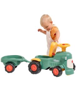 Maurice is een schattige en slimme kleine groen-gele tractor! Het begeleidt uw kind vanaf 12 maanden. Met zijn aanhanger is hij de perfecte metgezel voor tuinieren of spelen in de zandbak. Het is ook een fantastische bron van stimulatie met zijn mooie kleuren, een kleine sleutel met geluid en een richtbaar stuur met claxon om de fijne en grove motoriek te ontwikkelen. Deze kleine rijder brengt hulde aan 75 jaar expertise en kijkt tegelijkertijd naar de toekomst van onze kleintjes. Om deze reden is Maurice gemaakt van 90% gerecycled plastic en volledig vervaardigd in Frankrijk met net zoveel liefde als jij voor je kleintjes hebt!
