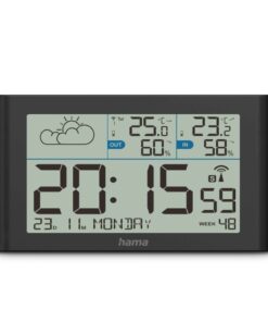 - Het extra grote en overzichtelijke display van het weerstation toont in één oogopslag de tijd, weersverwachting, temperatuur en luchtvochtigheid