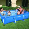 Oersterk zwembad met een frame-constructie. De liner (het folie) is eenvoudig te monteren aan deze buizen. Het zwembad staat binnen30 minuten. Daarna is het een kwestie van vullen en zwemmen maar!