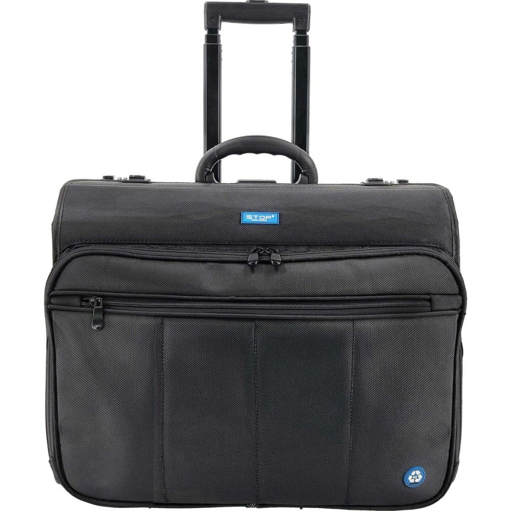 Een afsluitbaar trolleysysteem met twee combinatiesloten. Het heeft een afsluitbaar hoofdvak met gevoerd laptopvak en een extra A4 inschuifvak dat kan worden uitgebreid met twee zijritsen. De koffer heeft 2 voorvakken; een met twee verschillende grote inschuifvakken van gaas, 2 ritsvakken, een gevoerd tabletvak en een gevoerd voorvak met rits. Aan de zijkant zit een inschuifbaar zijvak.