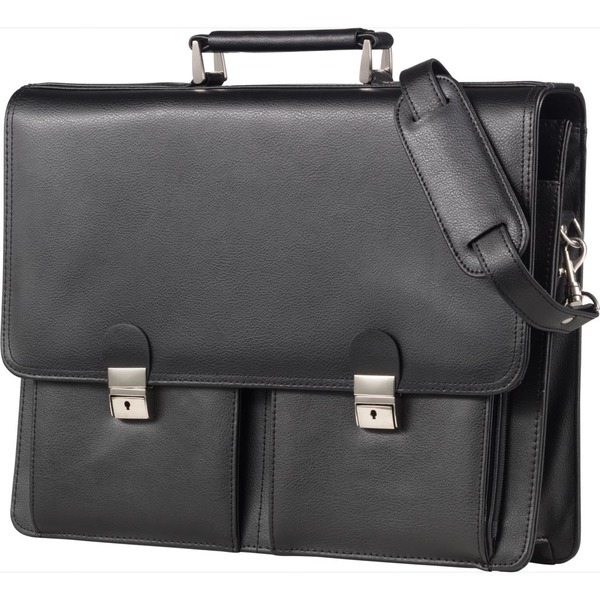 Tas met handvat en afneembare schouderriem, twee sloten, compartiment met ritssluiting op de achterzijde. Binnenafwerking: laptop compartiment, twee grote compartimenten, twee grote voorste compartimenten. Organizervak met pen loops, creditcard en smartphone compartiment.