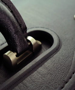 Pilotenkoffer met trolley systeem, afsluitbaar voorvak, zijvak en twee combinatie sloten. Binnenafwerking: groot hoofdvak, gewatteerd laptop compartiment, hangmaphouder, drie pennenhouders, visitekaarthouder en compartiment met ritssluiting in het deksel. 39,5×48,5x26cm. Echt leer, zwart.
