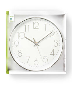 De ronde wandklok van Nedis® combineert eenvoud, stijl en goed leesbare grote cijfers met zilveren kenmerken tegen een witte achtergrond.