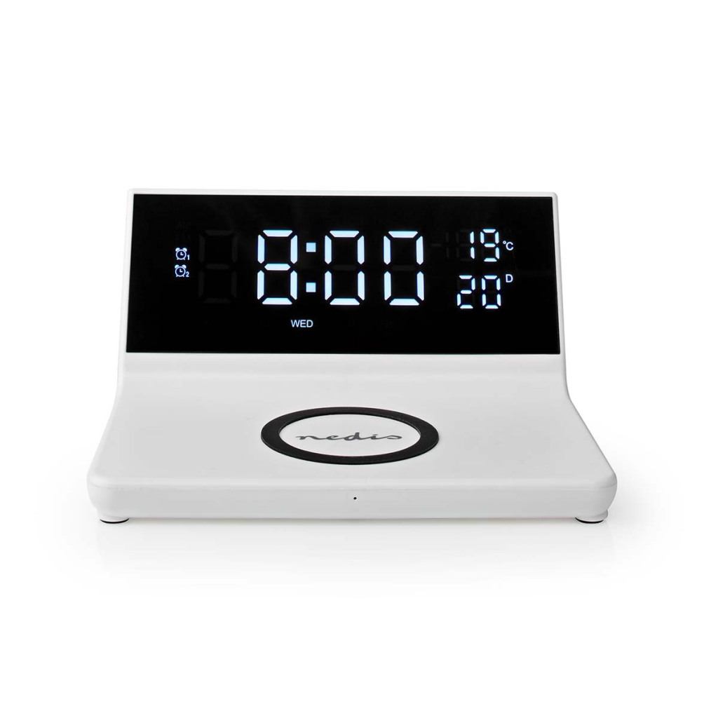 Met deze Nedis® 3-in-1-wekker, worden jij en je smartphone elke morgen helemaal opgeladen wakker, dankzij zijn drie functies: Qi draadloos opladen, een led-klok en de dubbele alarmfunctie.