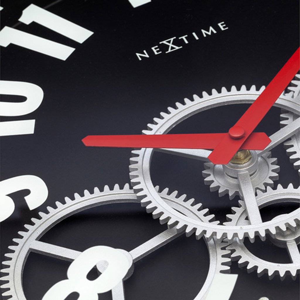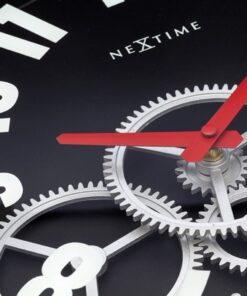 DeNeXtime NE-3259ZW Moderne Gear wandklok heeft een zwarte wijzerplaat, een zwarte kast en een duidelijke witte cijferindex die op de glasplaat is gedrukt. Dit ontwerp heeft een eigen draai geven aan een klassiek gear klok ontwerp door de combinatie van moderne rode wijzers, een duidelijke cijferindex en zilver kleurige bewegende kunsstof tandwielen. Deze wandklok is 36 cm en werkt op 1 AA batterij (niet inbegrepen).