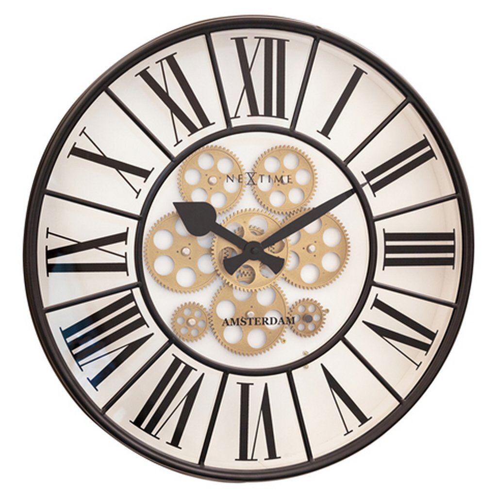 Deze NeXtime “William” wandklok heeft écht werkende tandwielen! Zijn ontwerp en grootte (Ø 50cm) maken van deze klok een ware pronkstuk. Deze klok is bedekt met een glasplaat en is bedrukt met een zwarte cijfer index. De combinatie van de zwarte cijfer index, de zwarte wijzers en de gebroken witte wijzerplaat zorgen voor een heldere contrast die het klokkijken makkelijk maakt. De bewegende tandwielen zijn afzonderlijk aan en uit te zetten. Deze klok werkt op 3xAA batterij (niet inbegrepen).