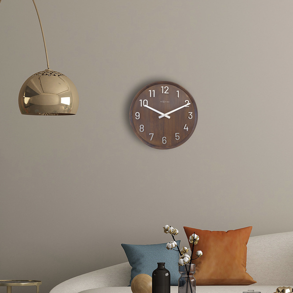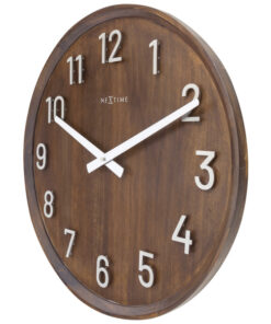 NeXtime’s Precious grote (50 cm) houten wandklok heeft een stijlvolle, chique uitstraling. De cijfers van de index hebben een geborstelde zilver metalen afwerking en zijn weg genageld uit de natuurlijke houten wijzerplaat. Dit creeert een prachtig geavanceerde 3-dimensionaal effect en een speelse schaduw op de walnoten wijzerplaat. Deze eye-cather is voorzien van een stil uurwerk en werkt op 1 x AA batterij (niet inbegrepen)
