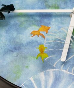 Een kunstwerk van goudvissen die in een lotusvijver zwemmen. Ontworpen door WENergy. Door de zeefdruk op dubbele niveaus, creÃert het een illusie van beweging die je geest ertoe brengt om naar een denkbeeldige dimensie te reizen en te genieten van mentale ontsnapping.