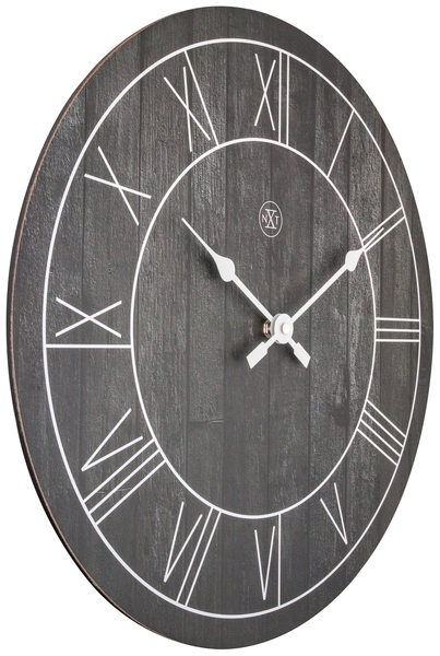 Wandklok Ø 40 cm. Donkerkleurig hout met een witte index. Elegante witte wijzers. Deze klok werkt op 1 AA batterij (niet bijgeleverd).