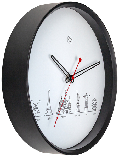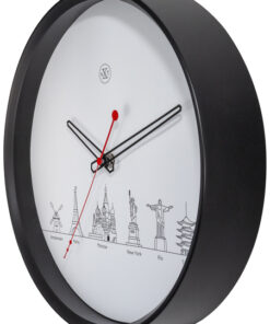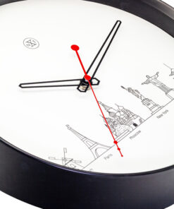 Wandklok kunststof Ø 30 cm. Worldtour opdruk. Zonder cijfers en een stil uurwerk met rode secondewijzer. Deze klok werkt op 1 AA batterij (niet bijgeleverd).