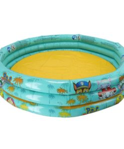 Stoer zwembad van Paw Patrol, met alle vriendjes vertegenwoordigd, inclusief een opblaasbare strandbal erbij. Het zwembad is ca 1 meter doorsnede en heeft 3 ringen. Kleur: groen/geel. Geschikt voor kinderen vanaf 3 jaar.
