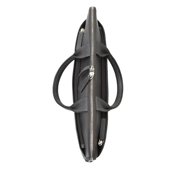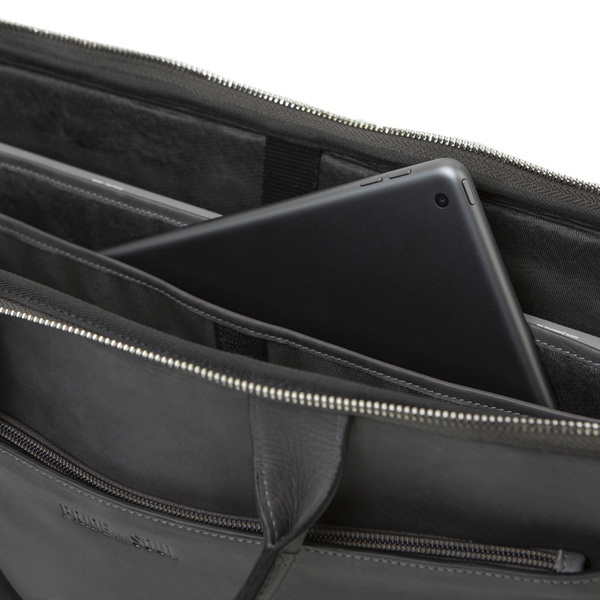 Aktetas met twee draagriemen, vak met ritssluiting voor en achter, trolleyriem, hoofdvak met ritssluiting. Binnen: hofdvak met gewatteerd laptopvak, binnenvak. Binnenmaat 25x36x2cm. Geschikt voor laptop tot 15′.
