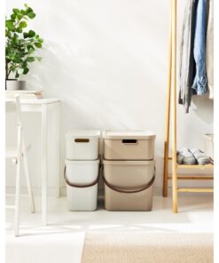De nieuwe maten 12 liter en 20 liter passen perfect bij de reeds bestaande 25 liter en 40 liter boxen en vullen zo het perfect doordachte systeem aan. De boxen zien er niet alleen goed uit, ze kunnen ook prachtig op elkaar gestapeld worden, waardoor u gemakkelijk orde kunt houden in uw huis. Het dragen wordt gemakkelijk gemaakt door de open handgrepen. Het onderhoudsvriendelijke plastic maakt een zeer eenvoudige en snelle reiniging mogelijk, zowel aan de binnen- als aan de buitenkant. Alle producten worden vervaardigd uit 100% gerecycled plastic en zijn 100% recyclebaar.