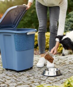 DeRotho Archie Pet Food Containeris de perfecte oplossing om het droogvoer van uw huisdier veilig te bewaren.Ontworpen met een luchtdichte afsluiting, houdt het voedsel vers en aromatisch en voorkomt het schimmel, een veelvoorkomend probleem wanneer voedsel in een open verpakking wordt bewaard.Met een royale inhoud van 38 liter (circa 18 kg) beschikt deze container over vier zwenkwielen, zodat u hem ook als hij vol is gemakkelijk kunt manoeuvreren.Bovendien maakt het strakke ontwerp hem tot een praktisch, decoratief element voor elke ruimte.De siliconen afdichting van het deksel houdt de versheid vast en houdt geuren tegen, terwijl de sluitclip ervoor zorgt dat uw huisdieren niet zonder toezicht kunnen knabbelen.Het niet-giftige, voedselveilige plastic van de container garandeert de veiligheid van het voer van uw huisdier.Het is gemakkelijk schoon te maken: gebruik gewoon een vochtige doek en water, en er wordt een schepje bij geleverd dat u in de ingebouwde houder kunt opbergen om te serveren.
