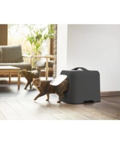 Niet alleen het uiterlijk van deze kattenbak overtuigt, ook de hygiëne wordt niet verwaarloosd.De kunststof bak is gemakkelijk schoon te maken en dankzij het koolstoffilter ontstaan ??er geen nare geurtjes.Het kattenluik wordt snel en veilig gesloten met een magneet, zodat ook hier geen dampen kunnen ontsnappen.Het deksel kan eenvoudig met één hand worden verwijderd om schoon te maken.Moderne kattenbak met kap, deur en schep.