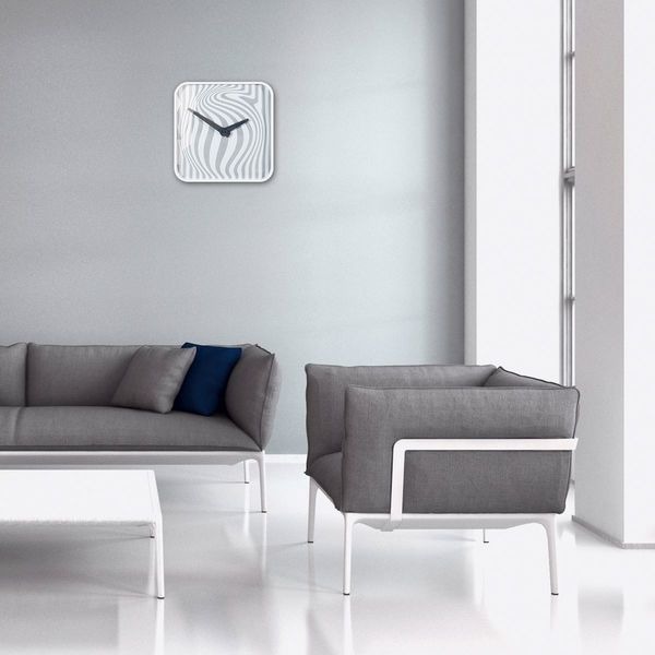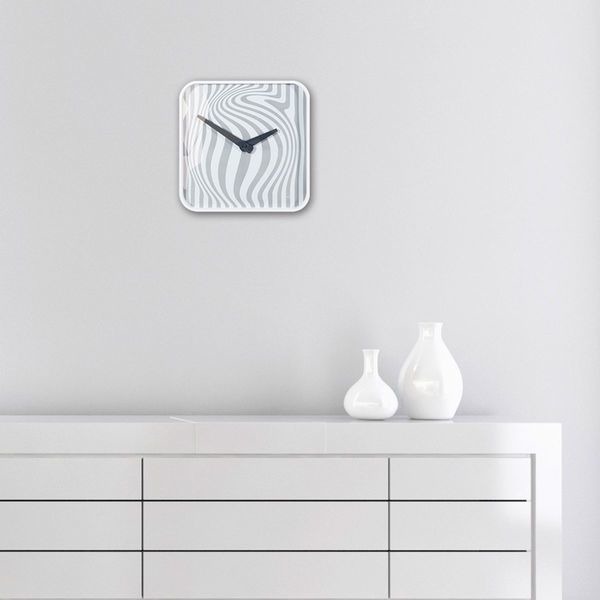 Kwalitatief hoogwaardige wandklok in modern app formaat. Hoogwaardige glanzende voorkant van mineraalglas in combinatie met een ABS-kunststof kast in hoogglans. Opvallende wijzerplaat met bijzonder, visueel effect in wit en grijs. Brede, kegelvormig toelopende wijzers in donkergrijs. Geruisloos uurwerk en geluidloze wijzers. Afmeting 350 x 350 x 45mm. Kleur wit. Loopt op 1 x 1,5V AA batterij (niet meegeleverd). Garantie; 5 jaar-www.sigel.de/garantie