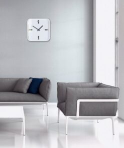 Kwalitatief hoogwaardige wandklok in modern app formaat. Hoogwaardige glanzende voorkant van mineraalglas in combinatie met een ABS-kunststof kast in hoogglans. Puristisch uitgevoerde wijzerplaat met grijze blok-elementen. Geometrische wijzervorm in donkergrijs. De urenwijzer met rood designaccent. Geruisloos uurwerk en geluidloze wijzers. Afmeting 350 x 350 x 45mm. Kleur wit. Loopt op 1 x 1,5V AA batterij (niet meegeleverd). Garantie; 5 jaar-www.sigel.de/garantie