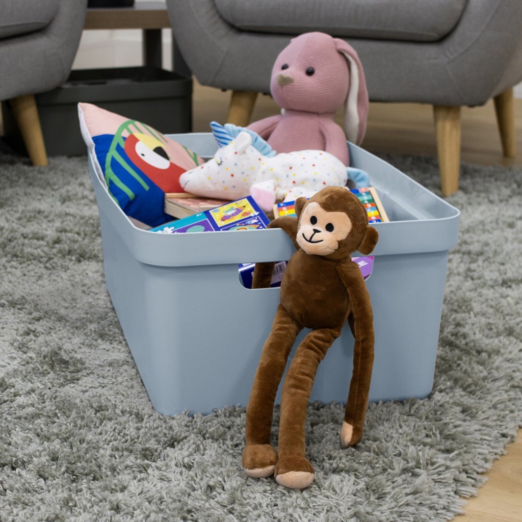 Alle speelgoed uit de kast halen en daarna alles weer mooi opbergen met de Sigma Home 45 liter opbergbox. Niet alleen speelgoed blijft perfect opgeborgen in de opbergbox, ook dekens, kussens en andere grote spullen in de woonkamer of slaapkamer kunnen in deze box worden opgeruimd. Alle Sigma home opbergboxen hebben geïntegreerde handgrepen waardoor je ze makkelijk kunt dragen. Daarnaast hebben ze een soft-touch look & feel en zijn ze mét deksel perfect stapelbaar. De transparante deksel past bij elke opbergbox en zorgt ervoor dat je spullen extra mooi blijven. Kleur: blauw.